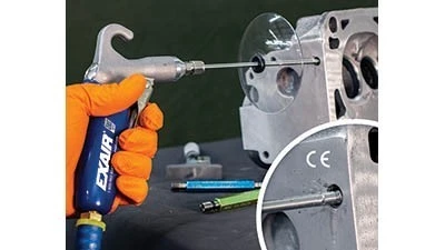 Cincinnati, Ohio – EXAIR's Soft Grip Back Blow Safety Air Gun uses the smallest back blow nozzle available to deliver a blast of air to effectively blow debris and liquids from inside small pipe or hose diameters, channels, bores, holes, internal threads, and other internal part features. The ergonomic design of the air gun keeps the operator's hand in a comfortable position so it can be used for hours of continuous use without fatigue.