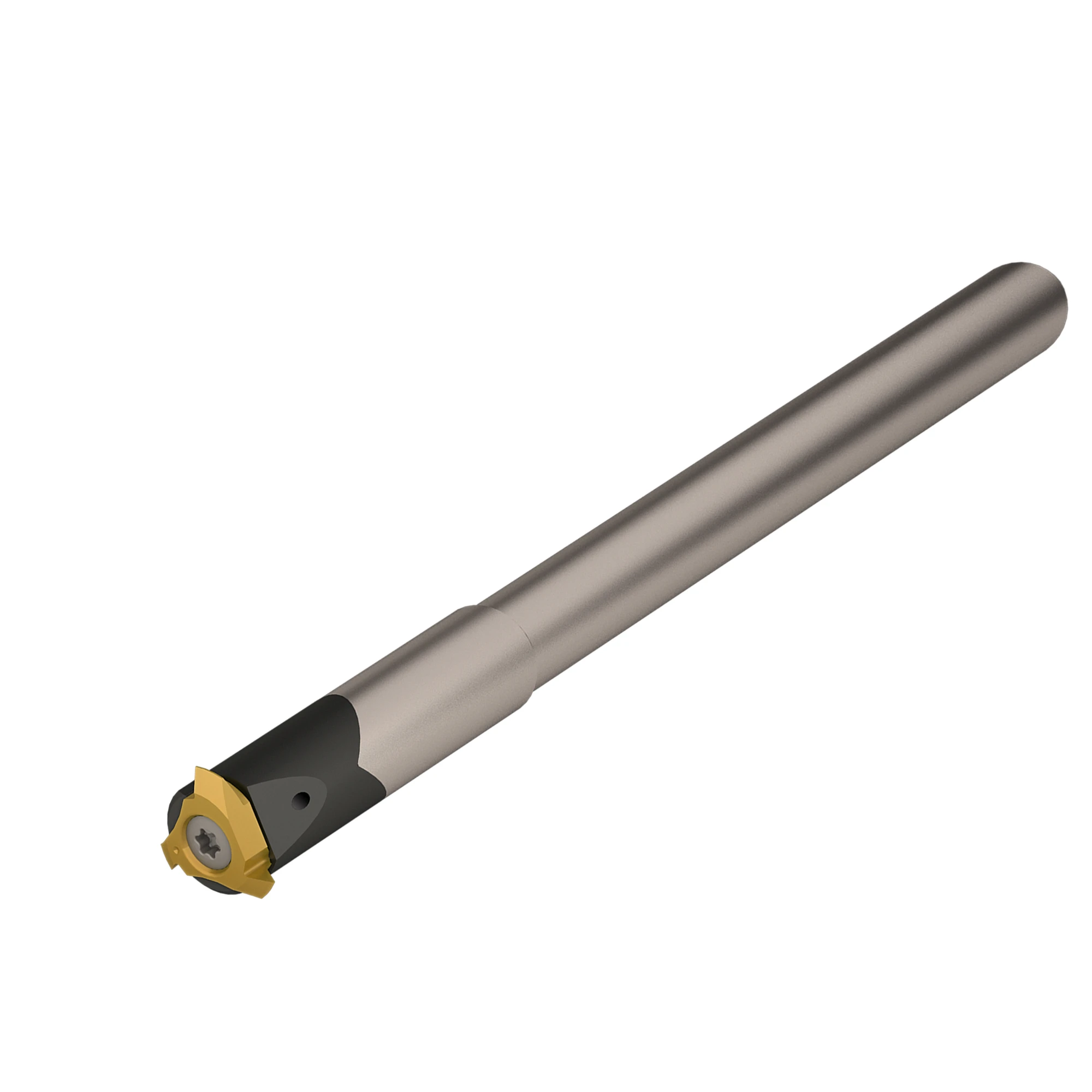 Toolholders for TMSD Vertical line are available in Weldon Steel Shank and Carbide Cylindrical Shank styles for a tool cutting diameter range of 10.5 to 20.8mm and a tool overhang range of 25 to 65mm. Both TMSD toolholder styles feature through-tool cooling for improved chip evacuation and cooling at the cutting corner - essential for deep-hole applications.