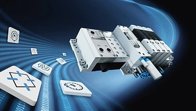 With a single intelligent valve slice potentially providing the functionality of up to 50 individual components, a CPS such as the VTEM Motion Terminal opens the door to standardized platform concepts for systems and system modules. Standardization considerably reduces hardware costs all along the supply chain as the number of different components that the machine builder or end user must define and stock as spare parts is lower. For example, valve variety is reduced to one and pressure sensor and flow control valves are integrated. By focusing on a flexible CPS platform right from the start, even the planning stage, the search for suitable products and suppliers can be shortened.