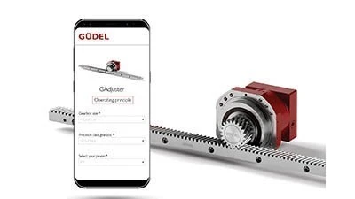 Güdel NGHP planetary gearboxes use a unique interface, together with a web application, to guarantee simple, precise, and error-free gear mesh adjustment for rack-and-pinion drive trains. With Güdel’s GAdjuster, setup and adjustment for the gearbox is fully defined for precise and repeatable results.