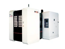 Two of the GE Series machines feature 40-taper spindles: the 400mm pallet GE460H and the 500mm pallet GE480H. Their 29.5hp, 15,000rpm spindles are paired with rapid traverse rates of 3,543ipm. These versatile machining centers are well-suited for applications including automotive, firearms, orthopedics, electronics, and die mold.