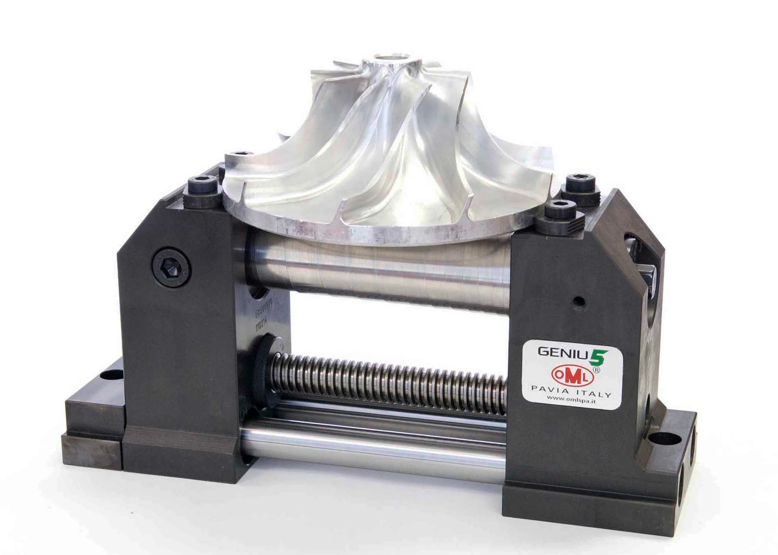 The Genius vise is specifically designed for precision 5-axis milling with trunion-table machines. The adaptable vise easily secures oddly-shaped workpieces, such as turbine blades and blisks, and presents them to the spindle with minimal obstruction, reducing setups and ensuring repeatability of 0.0008".