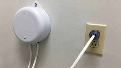 The ISO-PUCK may be mounted on a wall or on a cart where leakage current from computers, printers, or medical devices may exceed the maximum allowed value in operating rooms and patient care areas caused by frayed and aging insulation.