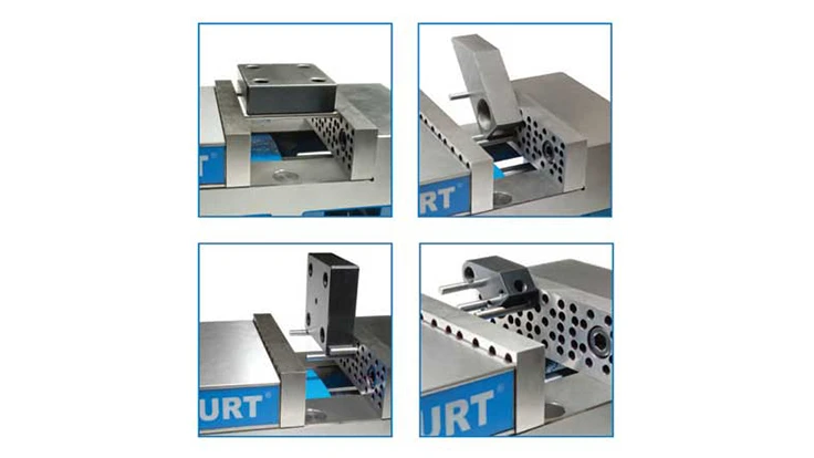 Kurt 3-In-One Jaw System increases the versatility of any standard 6" or 8" Kurt vise. It’s a simple, bolt on jaw system with a series of preset patterns with aligning pins. The jaws hold parts precisely like conventional jaw plates but with the extra benefit of allowing aggressive machining while clamping at preset angles. The 3-In-One jaw system can also be used as a work-piece work stop and a parallel, so it’s really three products in one.