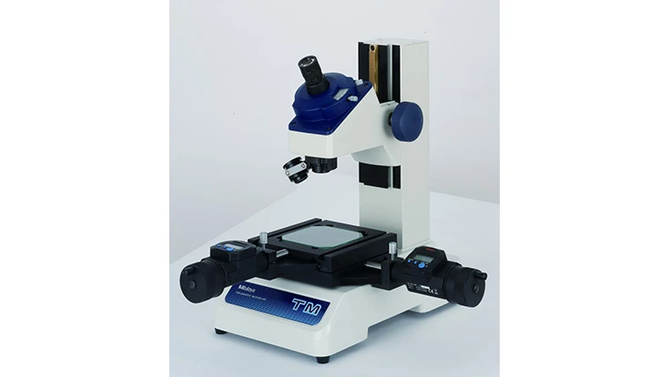Aurora, Illinois – Mitutoyo America Corp.’s TM Microscope Series offering enhanced features and ergonomic design, is a toolmakers’ microscope well suited for measuring dimensions and angles of machined metals. It also can be used to check the shape of screws and gears by attaching an optional reticle. The compact body makes it ideal for use on shop floors with limited space. A C-mount camera can be connected to the eyepiece by way of an eyepiece adapter, turning the TM series into a video inspection system. With bright and clear field of view, the TM Series microscopes offer the best-in-class performance for small models.