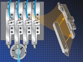 GenSwiss, a leading source for tools, accessories and application assistance for Swiss type machining, will lead with the new Multidec-LUBE Coolant Thru Tool Holder Clamp for CNC Swiss Machines that permits optimum coolant jet positioning, eliminates time bending and aiming coolant lines, drastically reduces overall setup time, and prevents stringy chips collecting on cutting tools. The patented design incorporates a coolant/oil delivery passage in the tool clamp that ensures a repeatable jet flow even after multiples tool changes or setups. This feature allows use of conventional square shank tool holders as if they were coolant-thru since the coolant travels through the clamp and can remain semi-permanently plumbed into the high pressure system. Also featured will be the Ti-Loc Swiss Clamp slitting saw and milling tool holders providing reduced tolerance stacking for low TIR, increased rigidity for slitting saw jobs, extending reach of micro-endmills and small shank rotary tools, and enables quick change tooling. This Taper-integrated tooling system works with virtually any collet that employs the dual angle ER collet system. In addition, the system enables presetting tool length for reduced setup time.