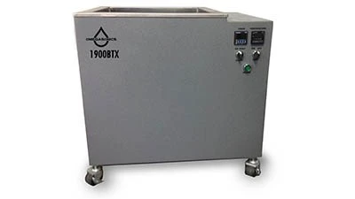 The 1900BTX is an enhancement to Omegasonics’ 1900BT, a 20-gallon, Plug & Play unit that is a hybrid between traditional bench top cleaners and portable floor models. The addition of the magnetic drive pump system in the new 1900BTX model allows for agitation, similar to a Jacuzzi, where turbulence is controlled so parts are not damaged. Inside the tank, circular flow helps dissolve the temporary support structure around the part. The flow and heat are both adjustable for different materials’ pressure and temperature requirements. Additionally, the water agitation tank features a directional spray nozzle that lets the user spray parts directly and precisely.