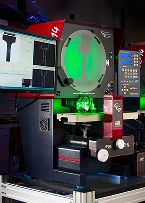 Simple comparators are perfect for inspection, whether using overlay charts for go/no-go decisions, or crosshair measurement using a modern DRO controller. They measure size and location on a wide variety of parts. CCP has a solution that “bridges the gap” between traditional comparators and video measurement systems. VidiProbe, available exclusively on CCP comparators, transforms a traditional comparator into an automated video measurement system by configuring a digital video camera inside the comparator’s optical system. VidiProbe presents the comparator screen image on a video monitor, allowing automatic measurement on a variety of features, including surfaces. In addition to providing the opportunity for automation, VidiProbe’s digital zoom allows for much higher magnification of small features like those found on manufactured parts, without the need for extra lenses.