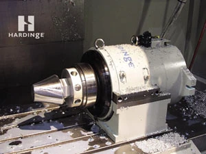 Hardinge's newest Quick-Change Rotary Systems incorporate a direct-drive, rare-earth permanent-magnet torque motor. This frameless motor wraps around the spindle, eliminating the need for a separate motor extension, and resulting in a much smaller footprint. The ± 0.077arc/sec resolution, ± 2.19arc/sec accuracy encoder is mounted directly on the spindle to ensure extremely accurate positioning.