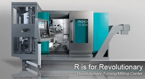 The design of the INDEX R200 allows it to machine equivalent workpieces almost twice as fast as commercially available turning/milling centers that use only a motorized milling spindle. One motorized milling spindle and one work spindle each are assigned to one another in two subsystems located one above the other permitting highly productive and flexible machining, including simultaneous and independent 5-axis machining on both spindles.