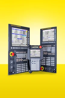 The Power Motion i–MODEL A CNC features multi-axis and multi-path functions with a maximum four control paths, 32 total control axes, and four simultaneous control axes - up to 16 axes by PMC axis control function that can be executed independently for each axis. It is also optimal for applications with large servo motors – up to 10 large servo motors in one CNC. Applications include: press machines, die cushion, loaders, wire saws and winding machines.