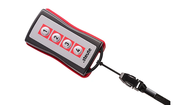 Steute’s wireless handheld remote control pendants feature 4 discrete function keys which, when actuated, each sends a unique, coded telegram to one or more compatible, easily-programmed receivers. Receiver accepts up to 10 discrete telegrams per channel.