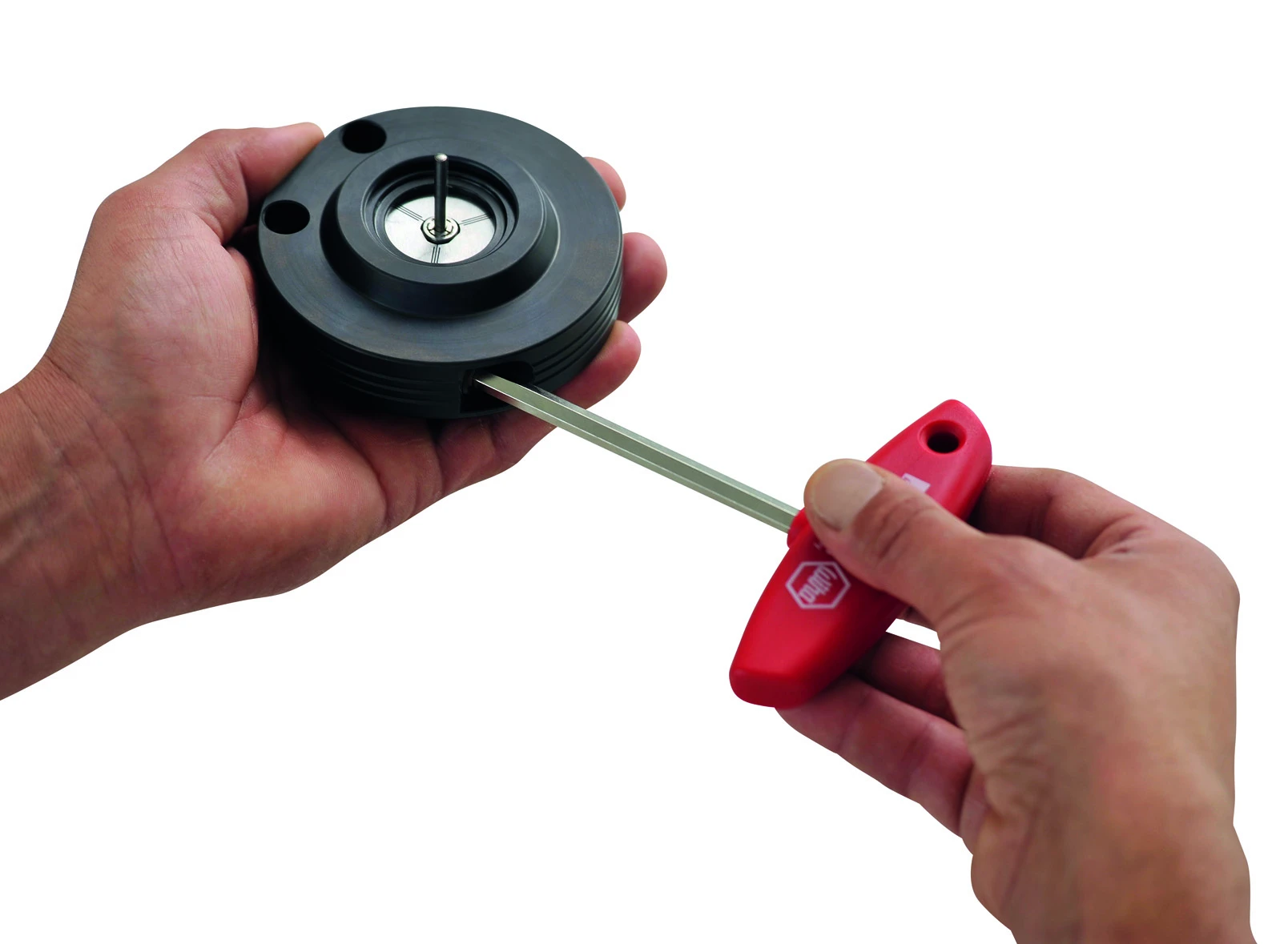 The SVP-Mini and SVP-RM from SCHUNK are manually actuated clamping devices that run on factory-defined set pressure, saving time and energy, reducing set-up costs, and eliminating operating errors. They can be fastened vertically or hori-zontally at a workstation, or used directly on the TRIBOS polygonal toolholders at the machine spindle.