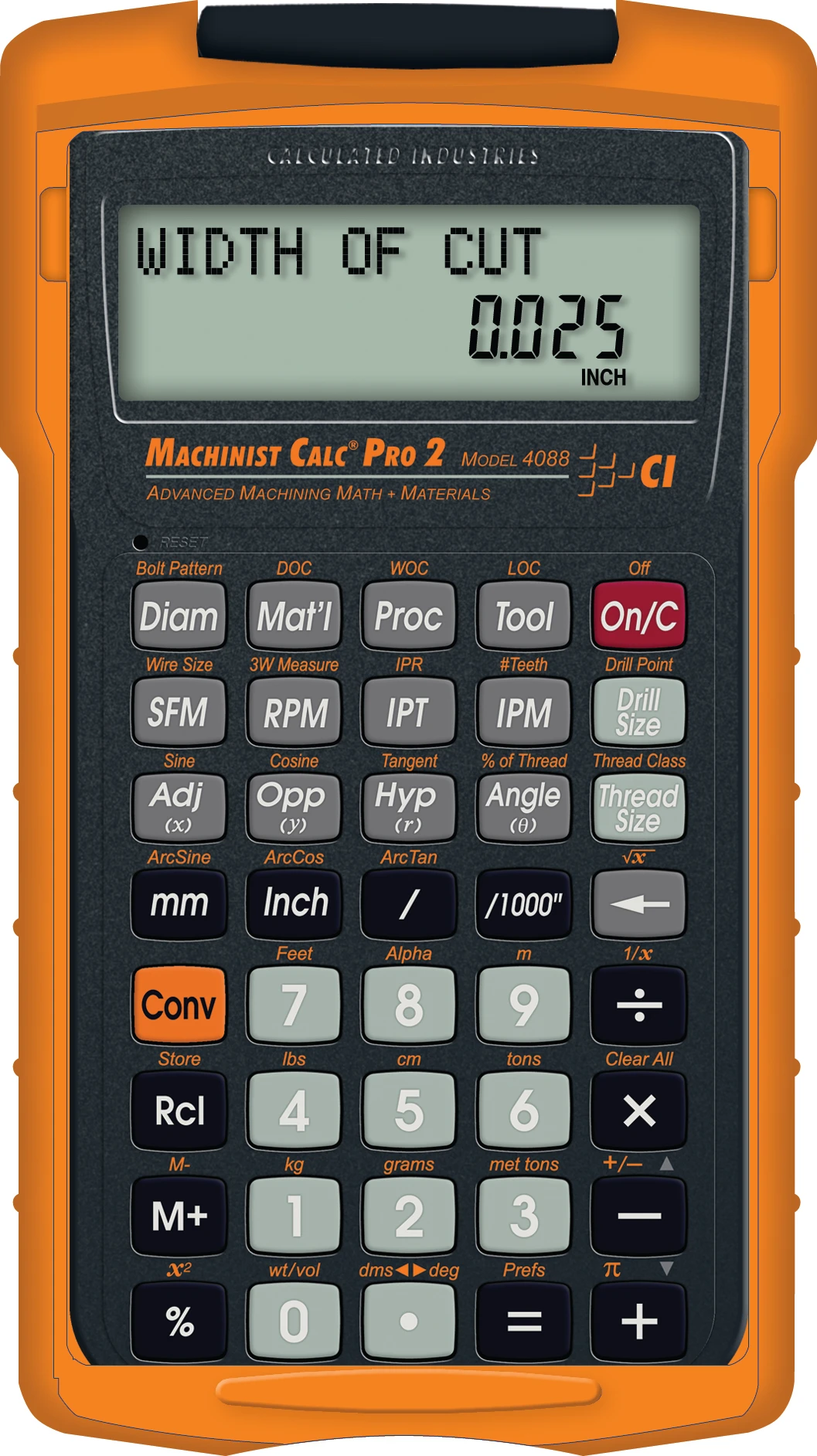 In 2010 Calculated Industries (CI) introduced a new handheld calculator specifically designed for machinists at the IMTS show in Chicago. The Machinist Calc Pro Advanced Machining Math calculator (Model 4087) quickly became a must-have tool in machine shops around the world.