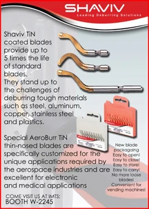 These Titanium Nitride-coated blades provide up to five times the life of standard blades. They stand up to the challenges of deburring tough materials such as steel, aluminum, copper, stainless steel and plastics.  Special AeroBurr TiN thin-nosed blades are specifically customized for the unique applications required by the aerospace industries and are excellent for electronic and medical applications.