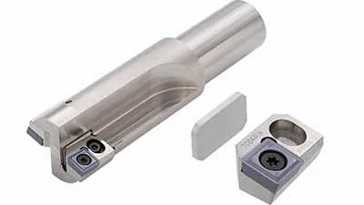TCB series counterboring tool diameters range from 26mm to 59mm (1.02” to 2.32”), and inserts with the –CG style chipbreaker geometry yields consistent chip flow in various materials at a range of cutting depths.