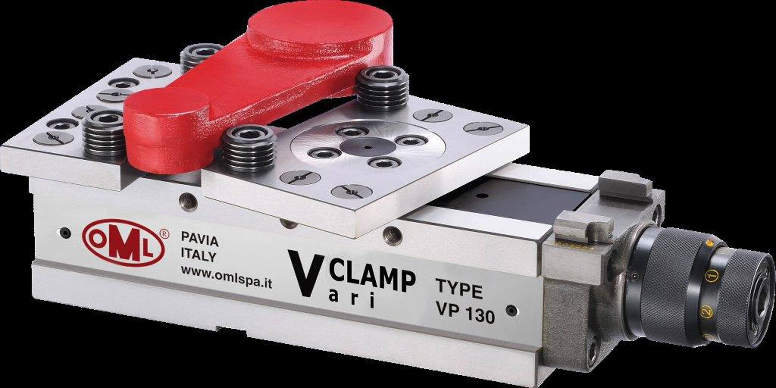 OML's VariClamp modular clamping system uses a floating mechanism of fixed and moveable jaws and a wide variety of gripper forms to provide custom clamping of irregular-shaped workpieces, including round, curved, elliptical, rectangular, stepped and slanted parts. Available from Lexair Inc., VariClamp vises can be configured with any combination of fixed or swiveling jaws, and various styles and heights of grippers – including smooth, serrated, soft, high, and with or without stops. Grippers are added via holes placed throughout the vise to conform to the part shape, and holes are capped and covered when not in use. A swivel mechanism incorporated into the moveable jaw allows for easy clamping of slanted and rough-surfaced parts. The super-low profiles of the fixed and moveable jaws also allow clamping of thin workpieces for heavy duty cutting and precision processing.